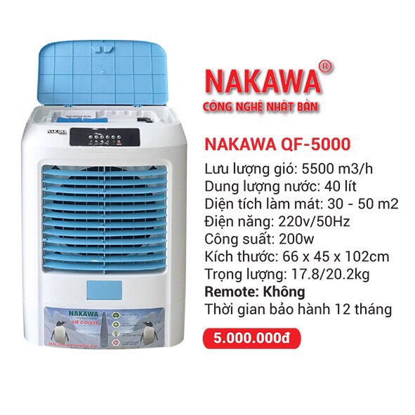 Lượng nước tiêu thụ: 2 đến 4L/h (còn tùy theo tốc độ của quạt)